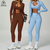 Custom Ropa Deportiva De Women's Long Sleeve Cropped Jacket High Waist Yoga Leggings 3 Pieces Gym Fitness Yoga Sets